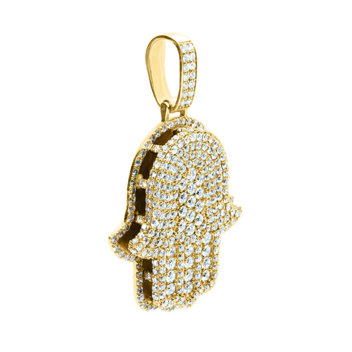 Add a touch of protection and sparkle with our diamond hamsa pendant in yellow gold! The massive and bright design makes a bold statement, while the intricate hamsa symbol brings positive energy and protection to...